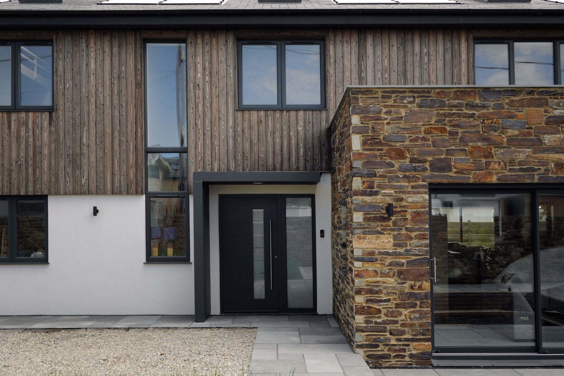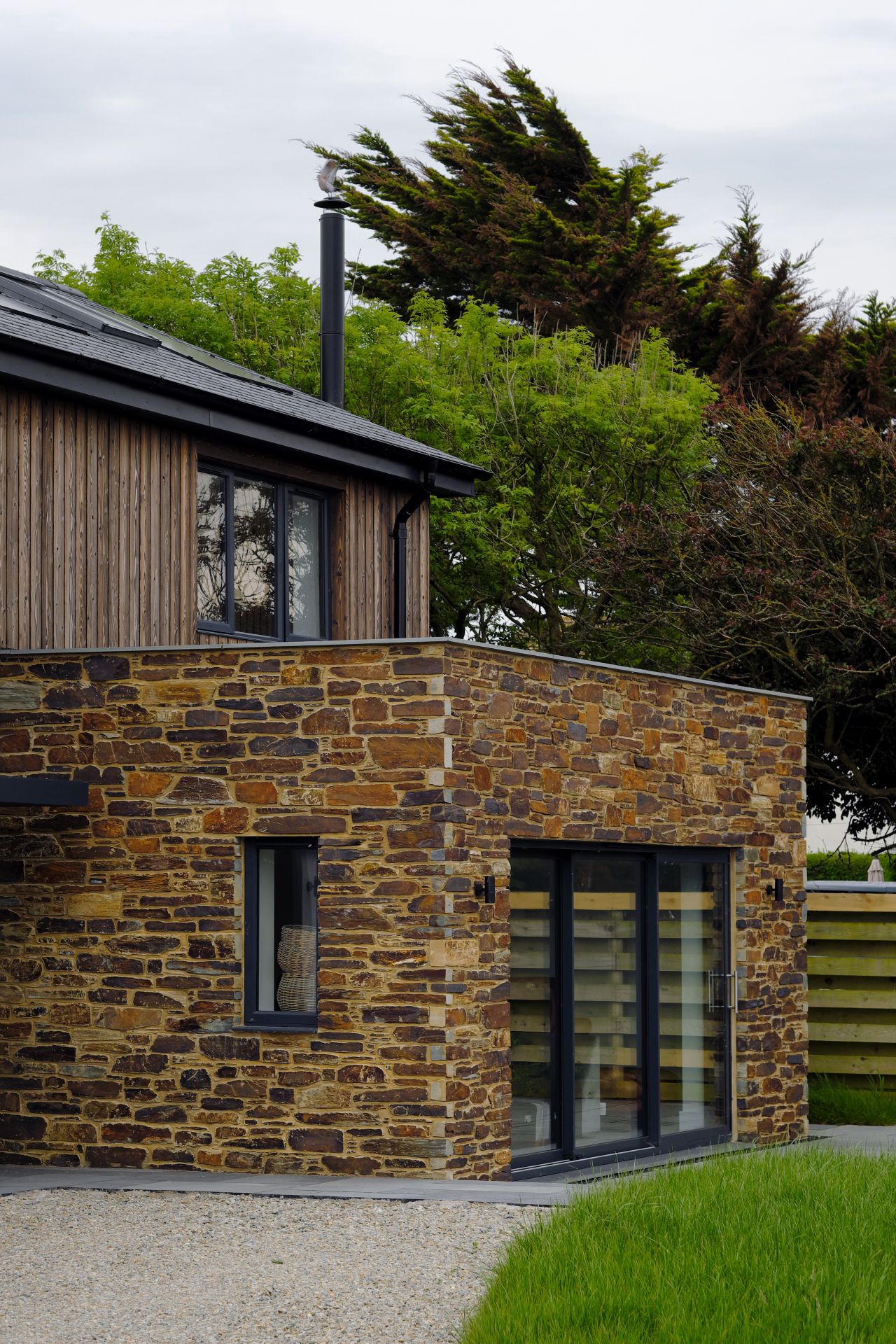 On Cornwall’s north coast, where slate cliffs taper into turquoise coves and the weather turns on a dime, this project takes its cues from the land and sea. The architecture is quiet and assured—rooted by coursed local stone and lifted by timber façades finished in Nakamoto Forestry’s Gendai and Pika-Pika, applied in a curated palette of colours. Together they form a material duet: the depth and shadow of charred cedar set against the crisp grain of brushed boards, each surface shifting with the Cornish light.