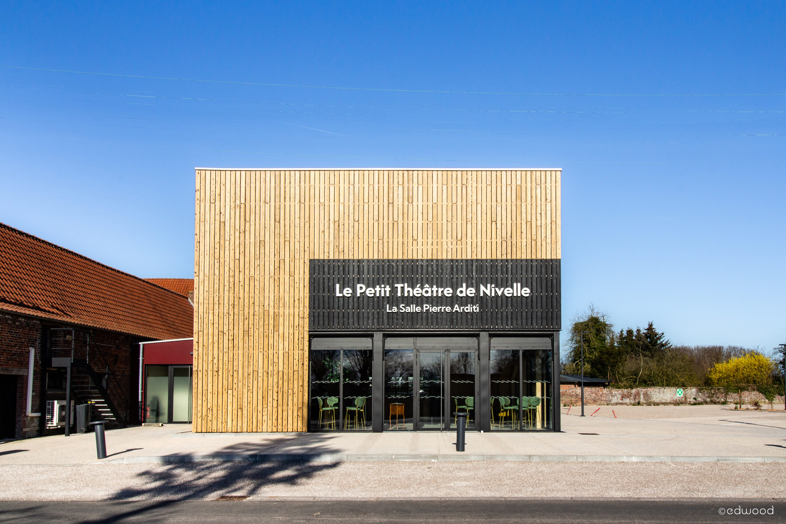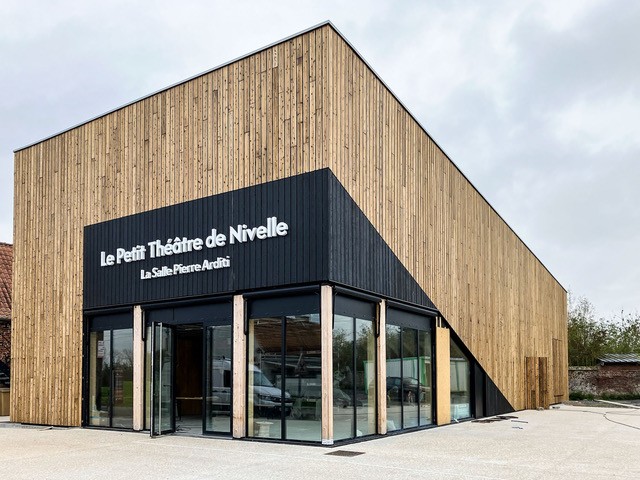 In the picturesque commune of Nivelle, located in the arrondissement of Valenciennes and close to the Belgian border in northern France, a new cultural landmark has emerged: Le Petit Théâtre de Nivelle – La Salle Pierre Arditi. This newly constructed building houses a 161-seat private theatre, built as an extension to an existing farmhouse that already contained a small performance space. With the new construction, this farmhouse now serves as the main stage’s entrance and support space, completing the transformation into a fully-fledged cultural venue.