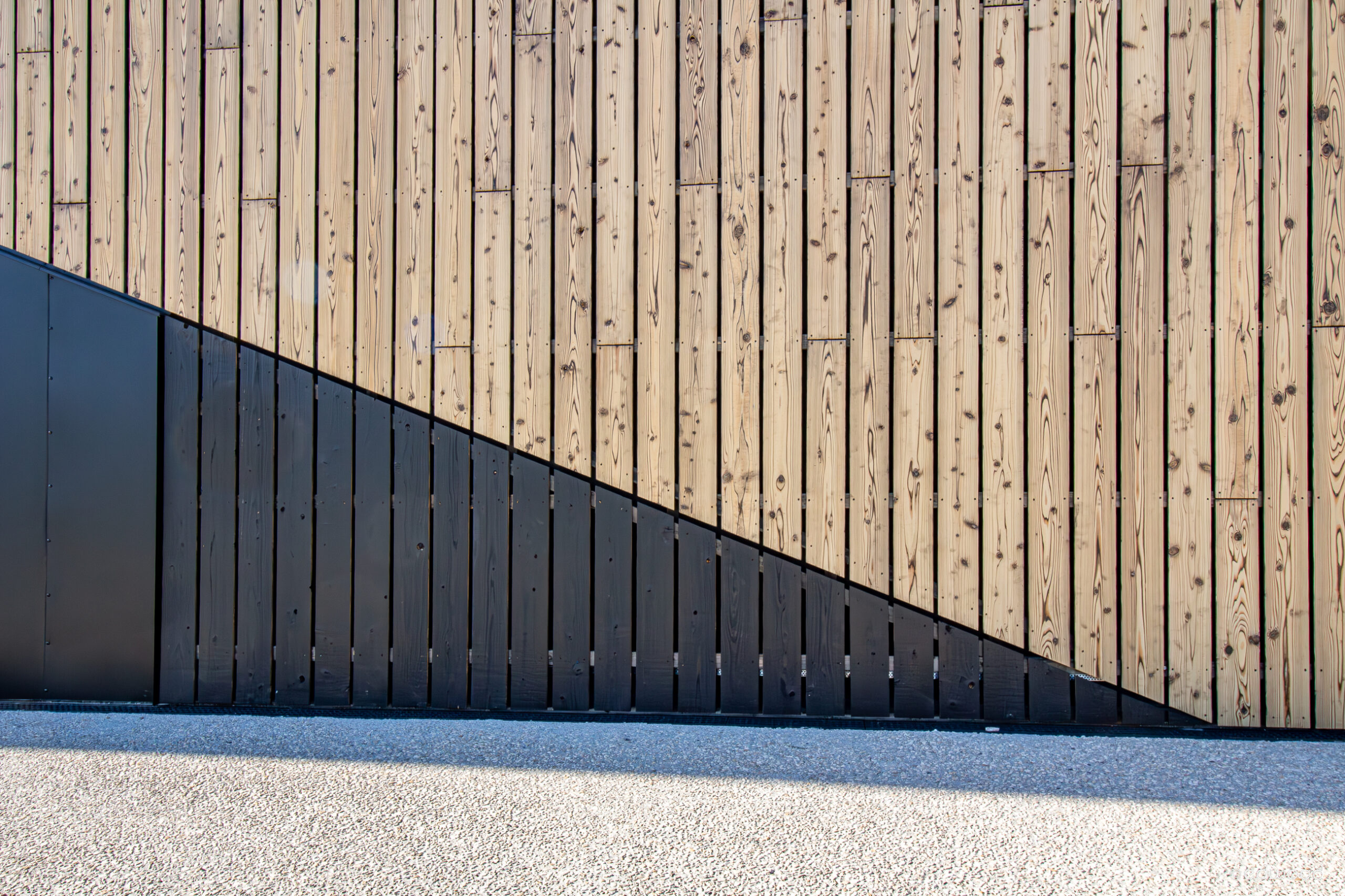 Pika-Pika is a refined version of the traditional Japanese Yakisugi (Shou Sugi Ban) technique, in which Sugi (Japanese cedar) is deeply charred, brushed to highlight the natural grain, and finished for enhanced durability. At Nivelle, both natural and blackened Yakisugi finishes have been used on the façade, producing a striking contrast that accentuates the building’s geometric form.